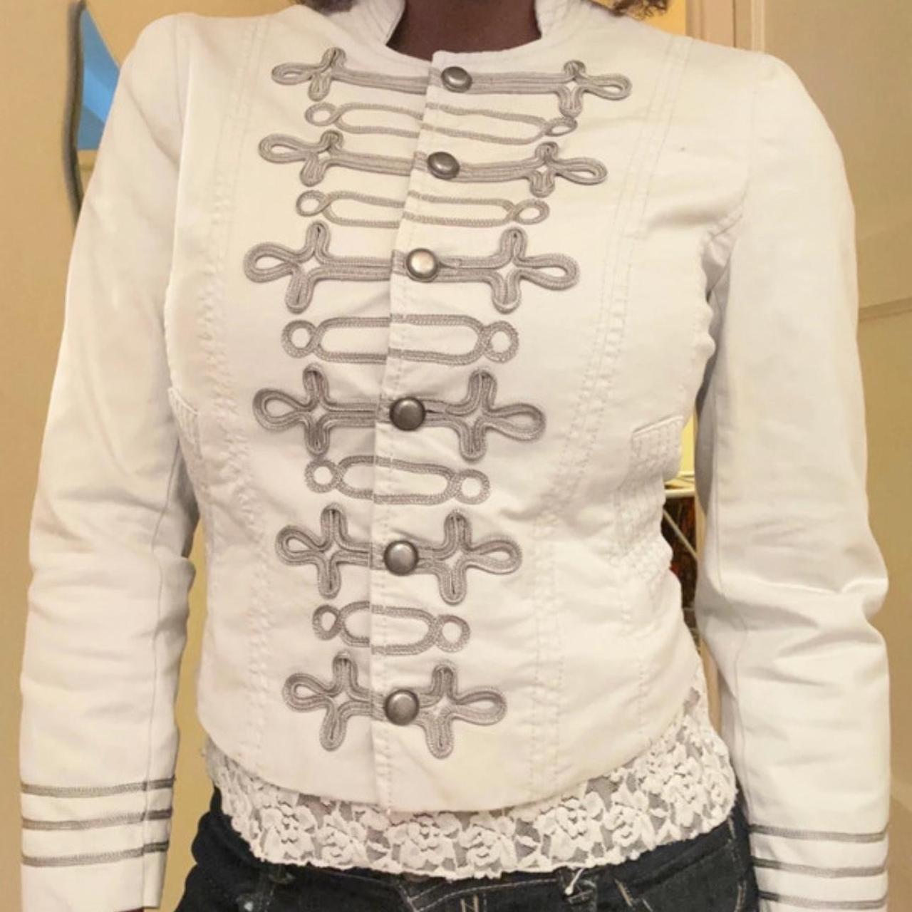 ✿ description: chic white military jacket with vintage-inspired detailing, perfect for layering.